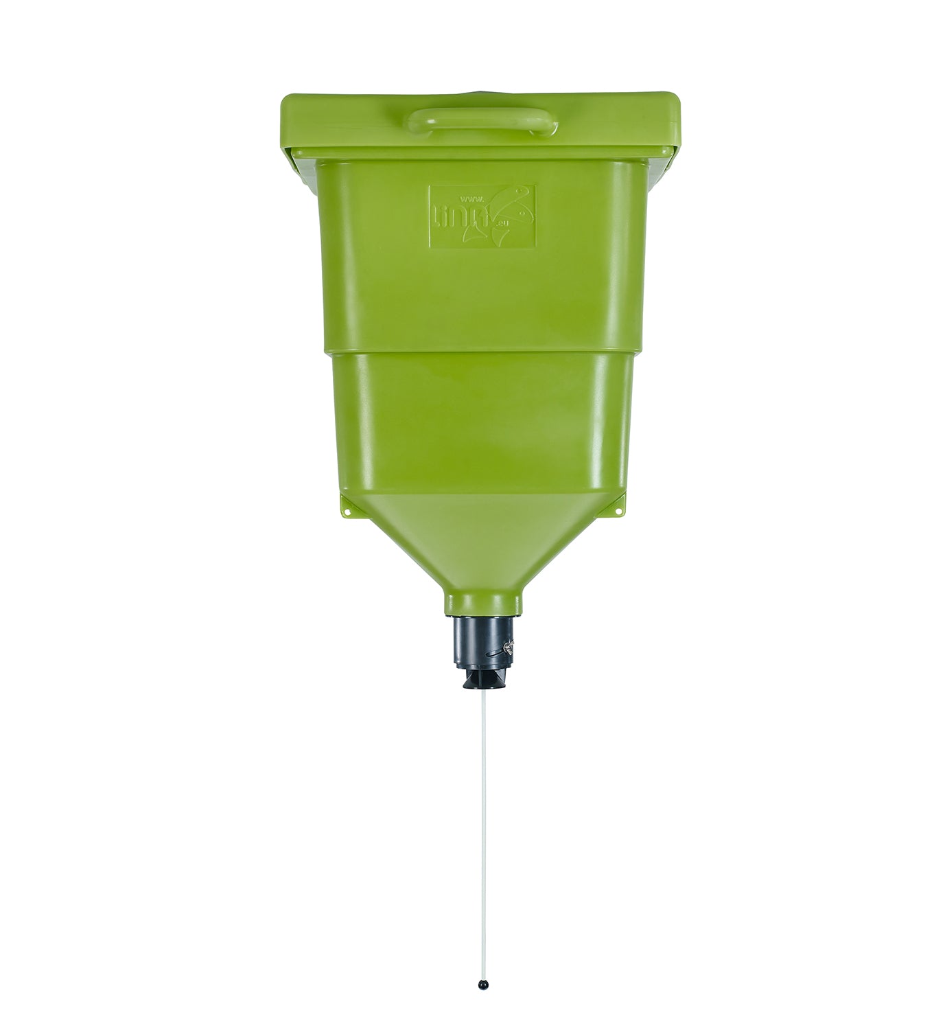 Der Pendelfischfutterautomat ist ein wertvoller Helfer. Er garantiert eine verlässliche Fütterung während der Abwesenheit des Teichbesitzers. Der Futterspender funktioniert nach dem Pendelprinzip. Durch Berühren des Pendelstabes fallen die Pellets ins Wasser. Die Fische begreifen schnell, dass durch das Anstoßen an den Pendel das Futter freigegeben wird. Futterpellets von 2-9 mm können mit dem Pendelfütterer verwendet werden. Die Futtermenge lässt sich mechanisch durch Drehen des Auslaufrohres stufenlos verstellen und damit die gewünschte Futtermenge dosieren.